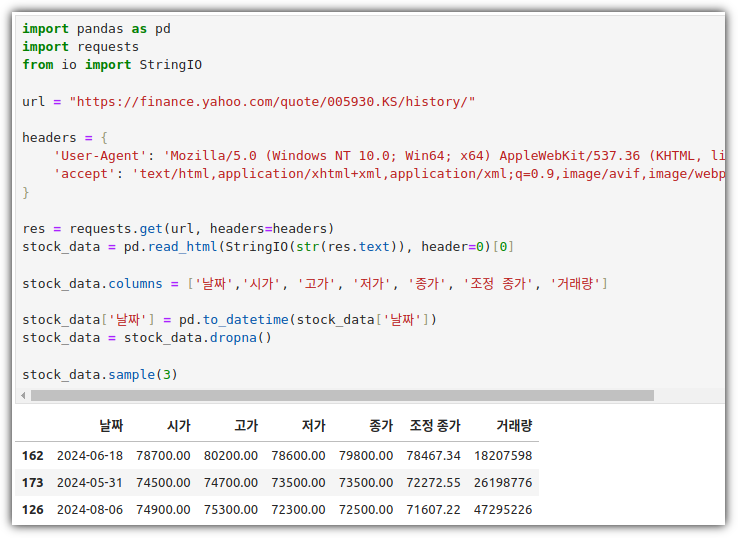 Jupyter Notebook 환경인 점을 이용해서 그냥 해당 변수를 찍어주면 나름 예쁘게 내용을 살펴볼 수 있다.