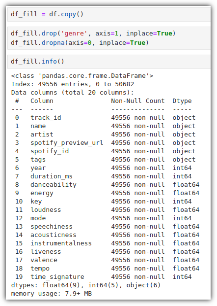 결측치 값이 하나라도 있는 row에 대해서는 모두 삭제를 해버렸기 때문에, 하나의 row만 남았다.
