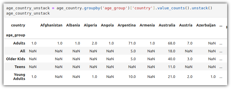 type 값이 "TV Show"인 row들에 대해서 "release_year" 값의 평균, "duration" 값의 합계를 구하려고 할 때