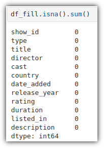 사실 알고 싶은 것은 각 column의 결측치 개수가 궁금하기에 .sum() 함수까지 붙여주는 것이 더 일반적이다.
