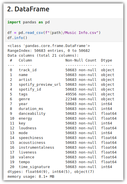 각 column의 Non-Null 정보, DataType 정보들을 모두 보여주고 있다.