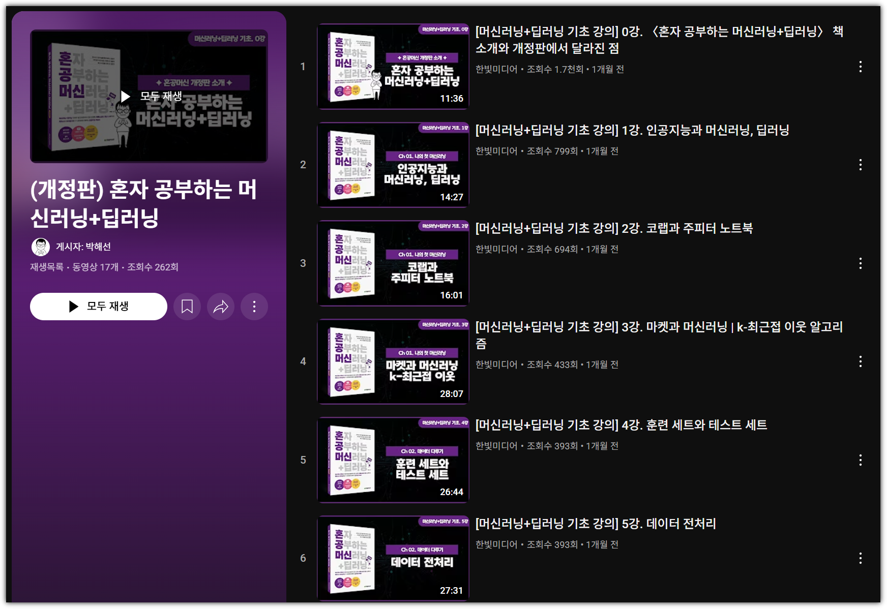 "박해선"님의 명작 도서, "혼자 공부하는 머신러닝+딥러닝"의 "개정판"이 나왔다 !!!