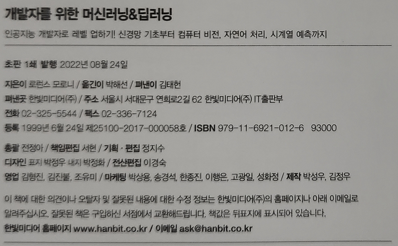 하지만, 머신러닝 번역서의 장인이신 박해선님이 예제를 비롯하여 내용들을 모두 살펴봐주셨으니, 믿습니다 !!! 😎