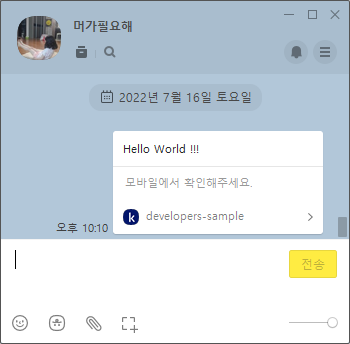 - 실제 카카오톡에서 정상적으로 동작하기 위해서는 등록된 앱을 시작시켜줘야 한다.