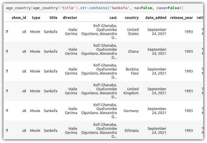 'country' column의 경우에도 ', '로 구분된 여러 나라가 입력되어 있음을 알 수 있다.