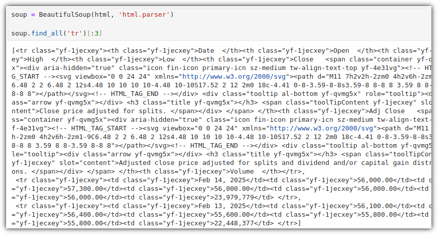 Jupyter Notebook 환경인 점을 이용해서 그냥 해당 변수를 찍어주면 나름 예쁘게 내용을 살펴볼 수 있다.