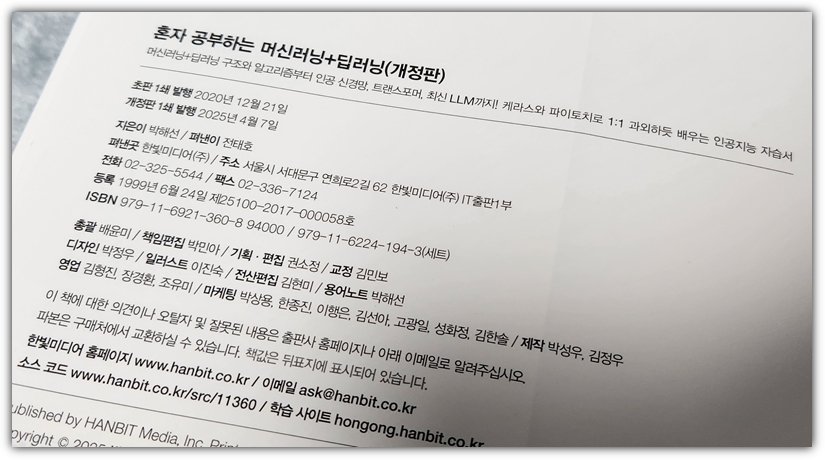 "박해선"님의 명작 도서, "혼자 공부하는 머신러닝+딥러닝"의 "개정판"이 나왔다 !!!