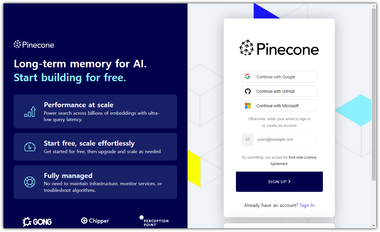 - 그리고, 친절하게도 Pinecone 라이브러리를 제공해주니 이를 사용하면 OK