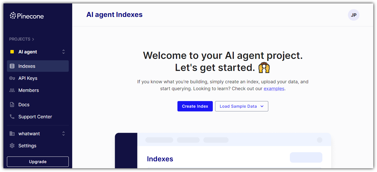 잠시 현재 Pinecone의 Index 상태를 살펴보자면 다음과 같이 아무 것도 없다.