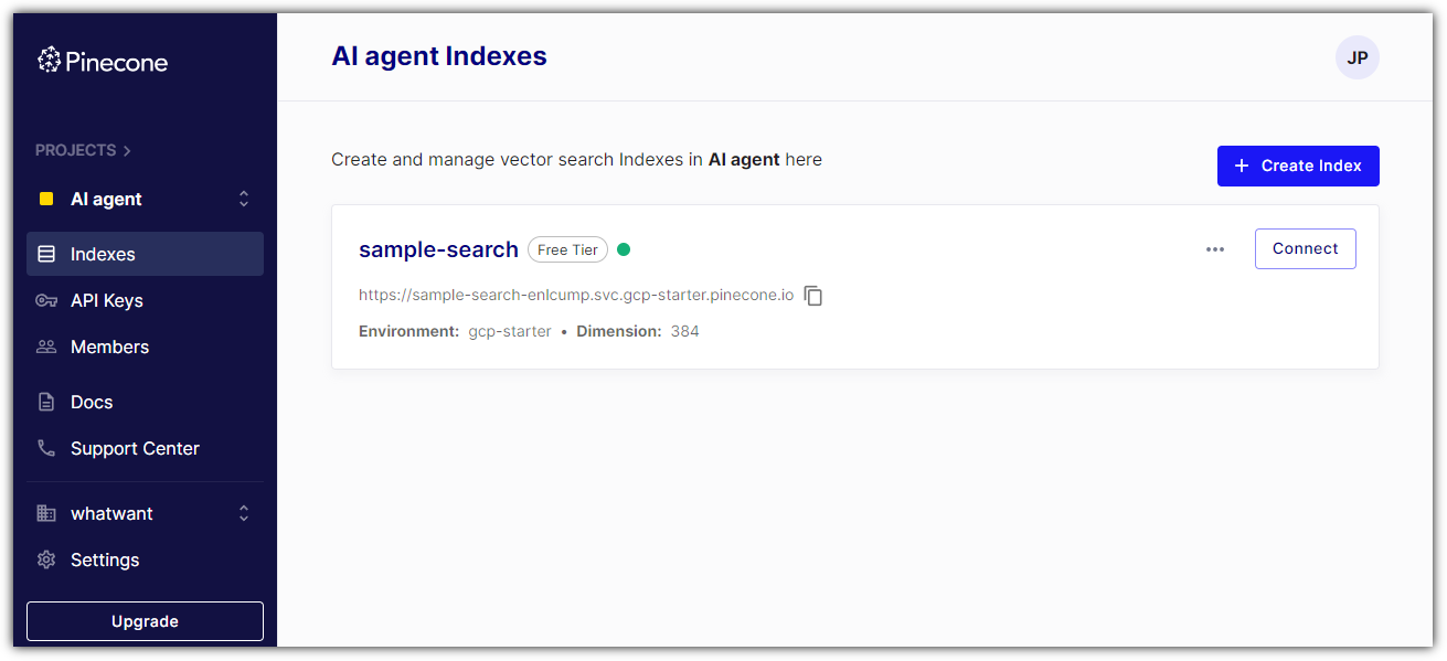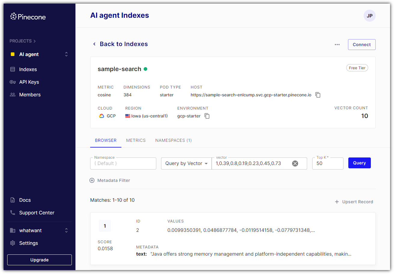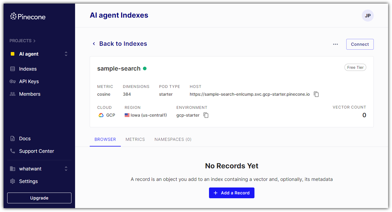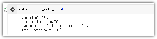 이렇게 만들면 Pinecone에서는 다음과 같이 결과가 보인다.