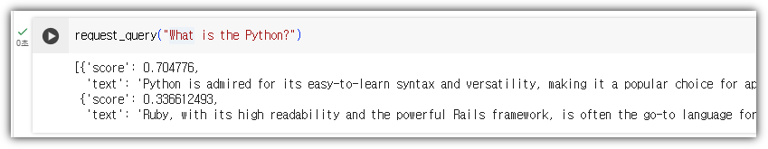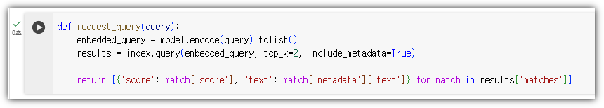 질문을 다시 임베딩해서 쿼리를 던지면 그와 유사도가 높은 것들을 답해주는 과정을 해보고자 한다.