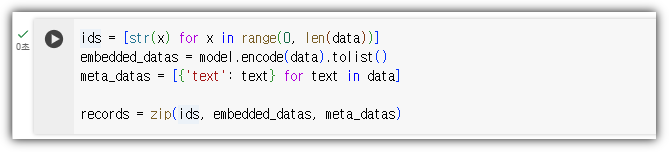그 다음에는 Pinecone으로 넣어줄 형태로 변환을 해야 한다.