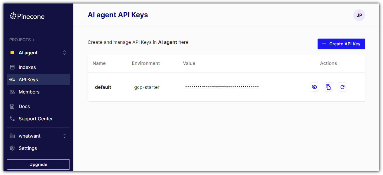 왼쪽 메뉴탭에서 'API Keys'를 눌러보면 하나 이미 만들어진 것을 확인할 수 있다.