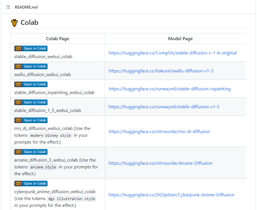 그러면, 원하는 모델에 있는 "Open in Colab" 아이콘을 클릭하자.