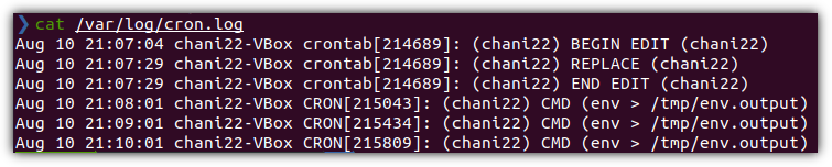 - 이미 알고 있겠지만, " * "는 every를 의미한다. 즉, 매분마다 환경변수들을 /tmp/env.output에 저장하게 된다.
