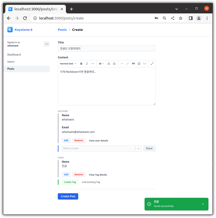 Create Post 버튼을 누르면 멋진 화면이 나온다.
