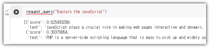 질문을 다시 임베딩해서 쿼리를 던지면 그와 유사도가 높은 것들을 답해주는 과정을 해보고자 한다.