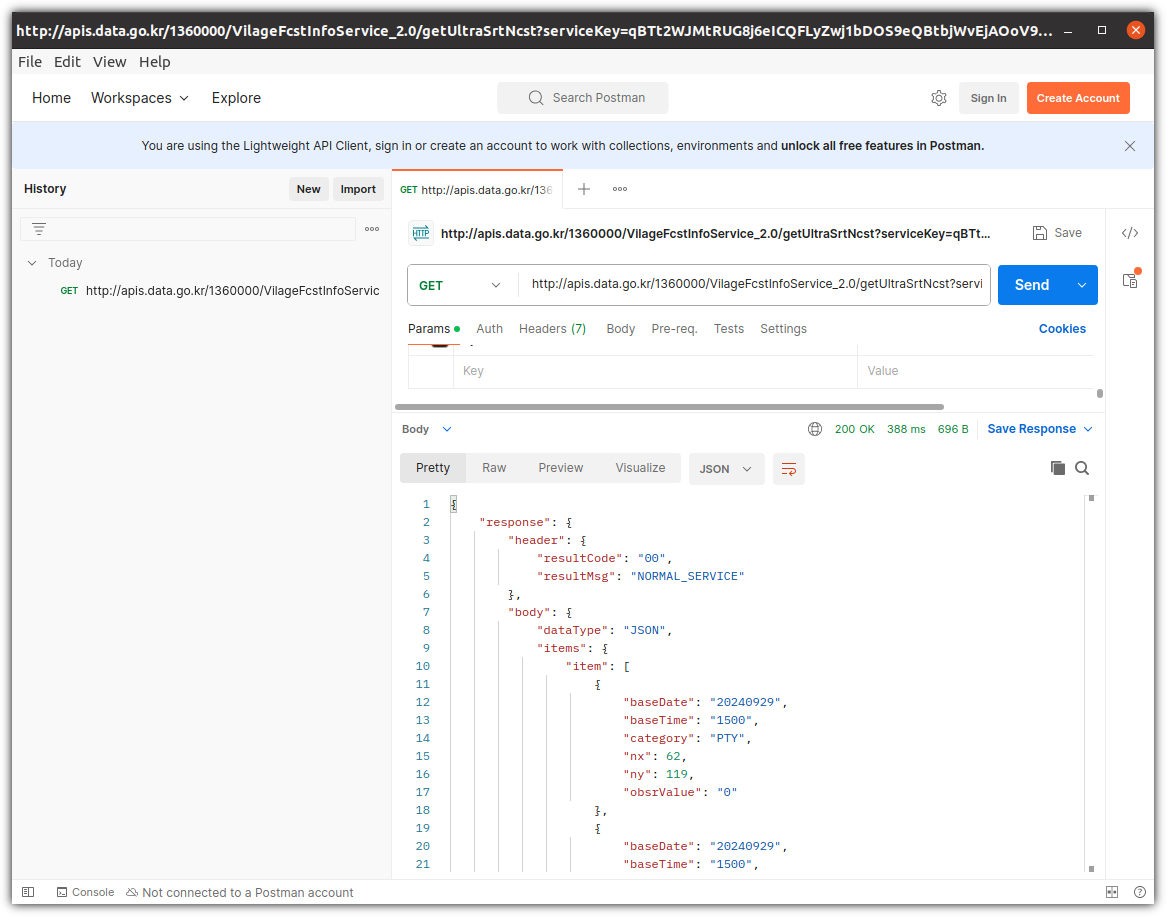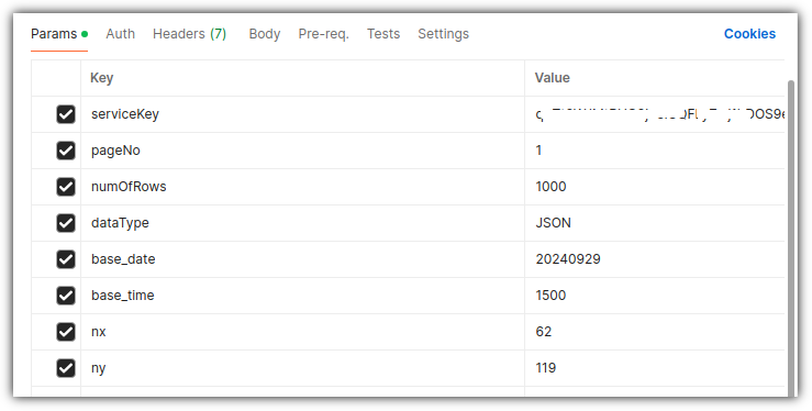 Postman을 사용할 때에는 Encoding된 인증키를 넣어줘야 했다.