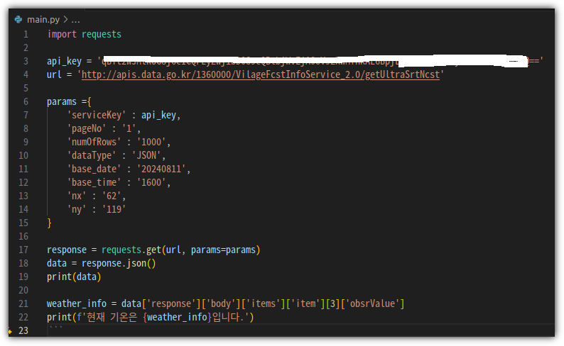 얼마전 살펴본 기상청의 날씨 정보 API를 이용해보도록 하겠다.