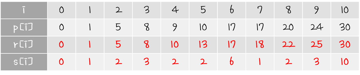 n 길이의 막대기가 있을 때, i 길이의 가격과 'n - i' 길이일 때의 최대 수익의 합이 최대인 i값을 찾는 것을 의미 한다.