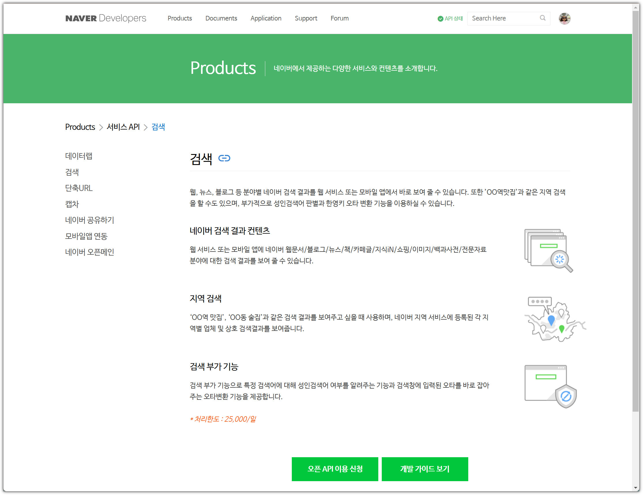 일단 여기에서는 "검색"을 위한 API 사용 신청하는 과정을 기준으로 설명해보겠다.