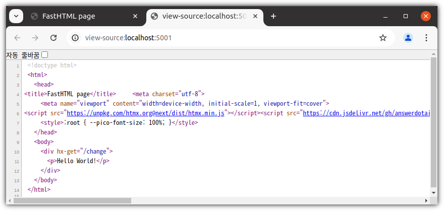 웹-브라우저에서 "Hello World!" 부분을 클릭하면