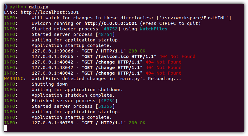 그러면, 다음과 같이 파일이 변경된 것을 감지하고 자동으로 Reloading을 한다!!!