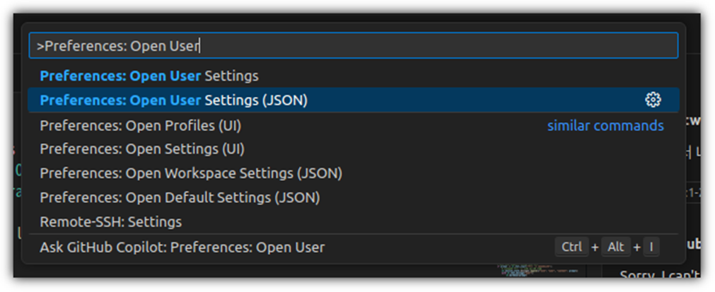 "Preferences: Open User Settings (JSON)"를 선택하자.
