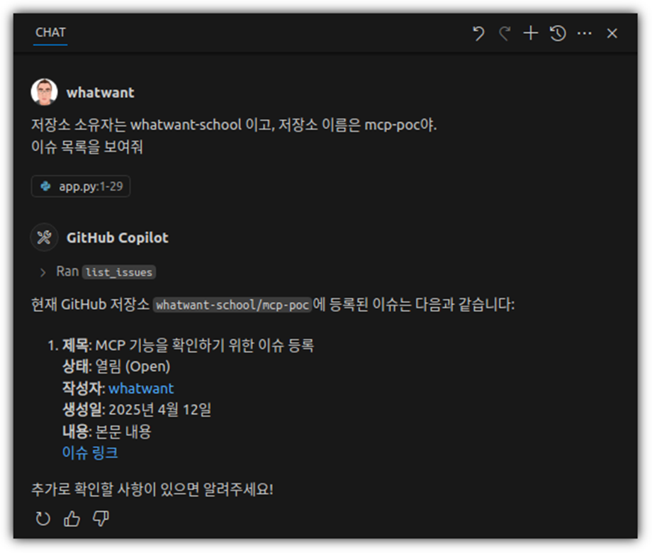 그러면 이제 GitHub MCP Server를 활용하는 사례를 진행해보자.
