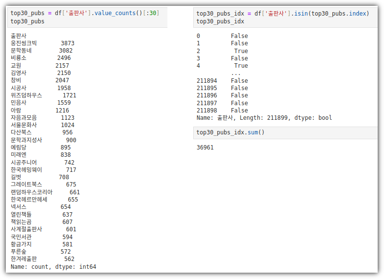 이것을 DataFrame Column에 넣어주면 True 행만 추출이 되는 것이다.