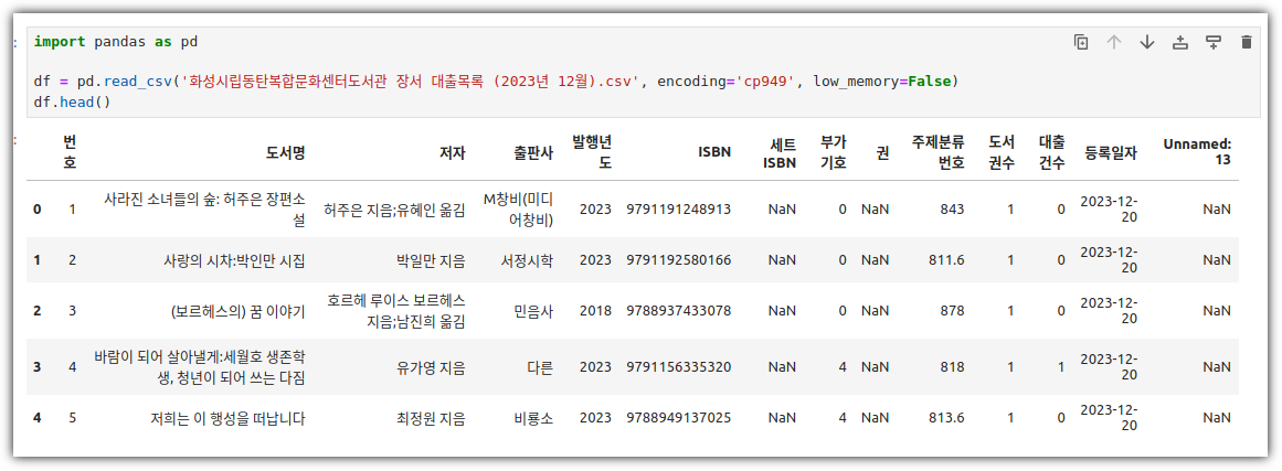 다음에는 정제 작업을 다시 할 필요 없이 해당 파일을 바로 불러오면 된다.
