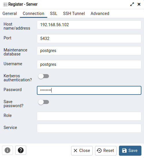 postgres  | Superuser, Create role, Create DB, Replication, Bypass RLS | {}