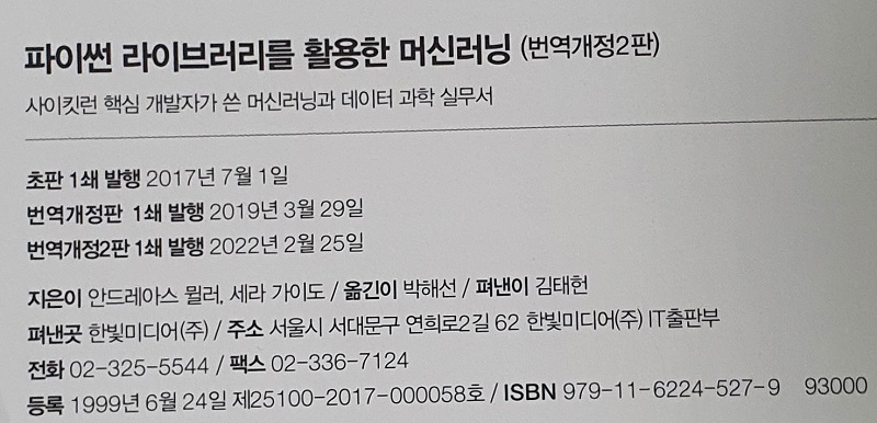 scikit-learn 1.x 버전에 맞춰 업데이트 된 것 뿐만 아니라 내용도 더 추가가 되었다.