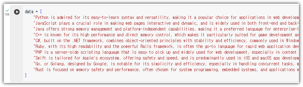 프로그래밍 언어를 한 문장으로 정리해달라고 했다.